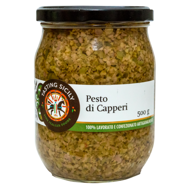 A typical Sicilian pesto with a Mediterranean flavor that enhances the unique taste of capers.