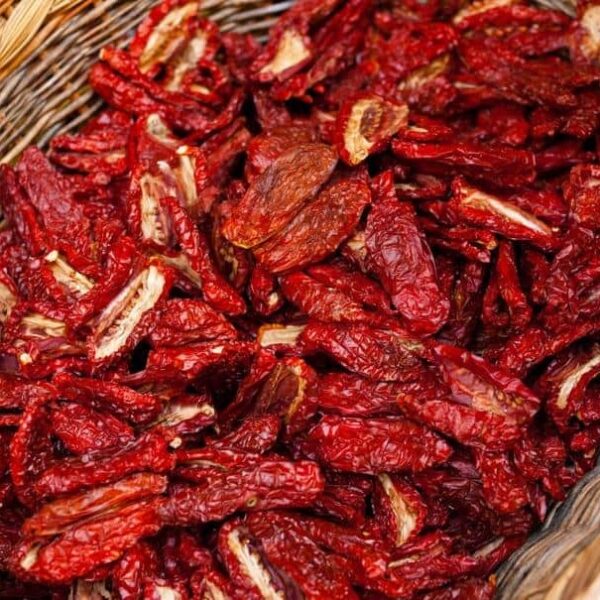 Sun-dried tomatoes (45%), sunflower seed oil, tomato concentrate, almond flour, garlic.