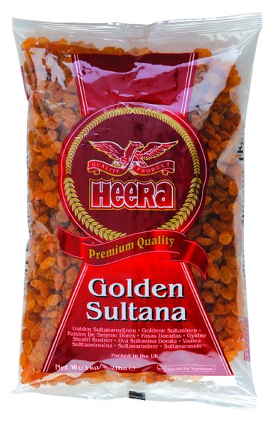 Heera Golden Sultanas/Raisins are seedless, succulent and sweet almost honey-like. Golden sultana is lighter in colour, although the colour ranges from very light to brown. The golden sultana is a type of white, seddless grape of Turkish, Greek, South African or Iranian origin. Golden sultanas are a natural choice for cakes, biscuits and desserts, but the warm rounded flavour goes just as remarkably well with savoury ingredients.