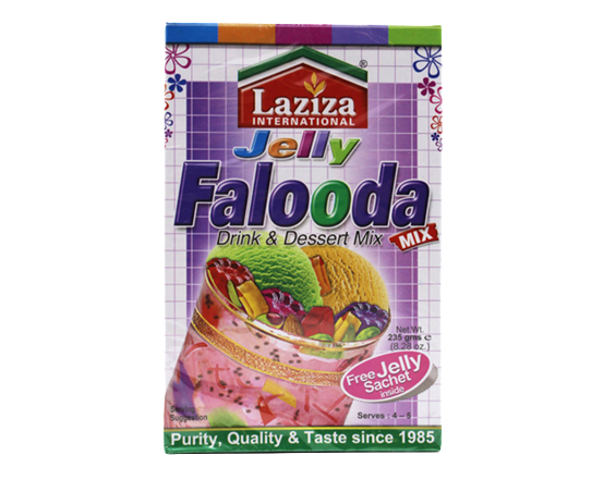 Falooda is a popular dessert drink for the summer time. The main ingredients are milk, Vermicelli, sugar and basil. The soft drink is usually served with ice cream and nuts. Prepare a Falooda drink with the Laziza mixture in short time. Jelly flavor.