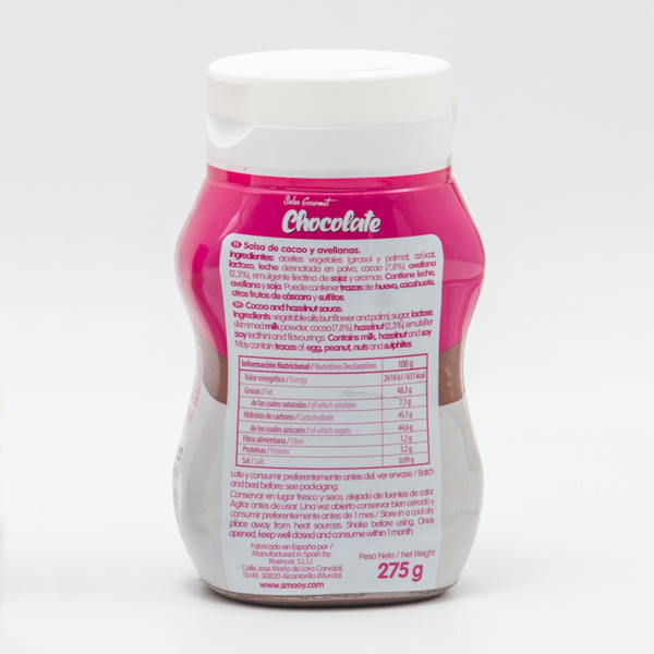 Chocolate and hazelnut sauce ideal for decorating crepes, pancakes, waffles, desserts, milkshakes, and ice creams. No artificial colorants. The box contains 12 jars of 275g sauce each.