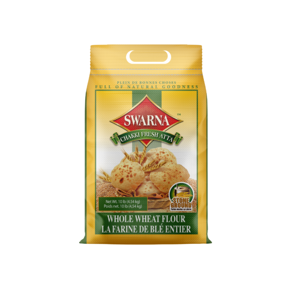 Swarna Chakki Fresh Atta is made from 100% whole wheat atta, with NO maida mixed. The Swarna Chakki Fresh Atta Story: First, the world’s finest, healthy wheat arrives at the mill. Next, every grain undergoes several cleaning processes in our advanced cleaning machines. Since it remains untouched by human hands, it is 100% natural and hygenic. Once the grains are 100% clean, they are sent to themodern, gentle stone-grinding mill. Gentle grinding ensures that the flour (atta) stays fresh and the vitamins and proteins present in the wheat are preserved. The stone-ground, wholemeal atta is then packed in high-quality, hygienic packs. The result is Swarna Chakki Fresh Atta. A superior quality flour that absorbs more water than you knead it. So, the rotis puff and will remain soft even hours later! Ingredients: Superior wholemeal wheat flour. Contains NO artificial additives.