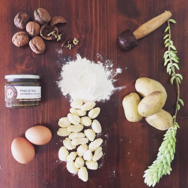 Extra Virgin Olive Oil, Walnuts (42%), Almond Flour, Chili Pepper, Raisins in Malvasia (1.5%), Garlic, Salt.